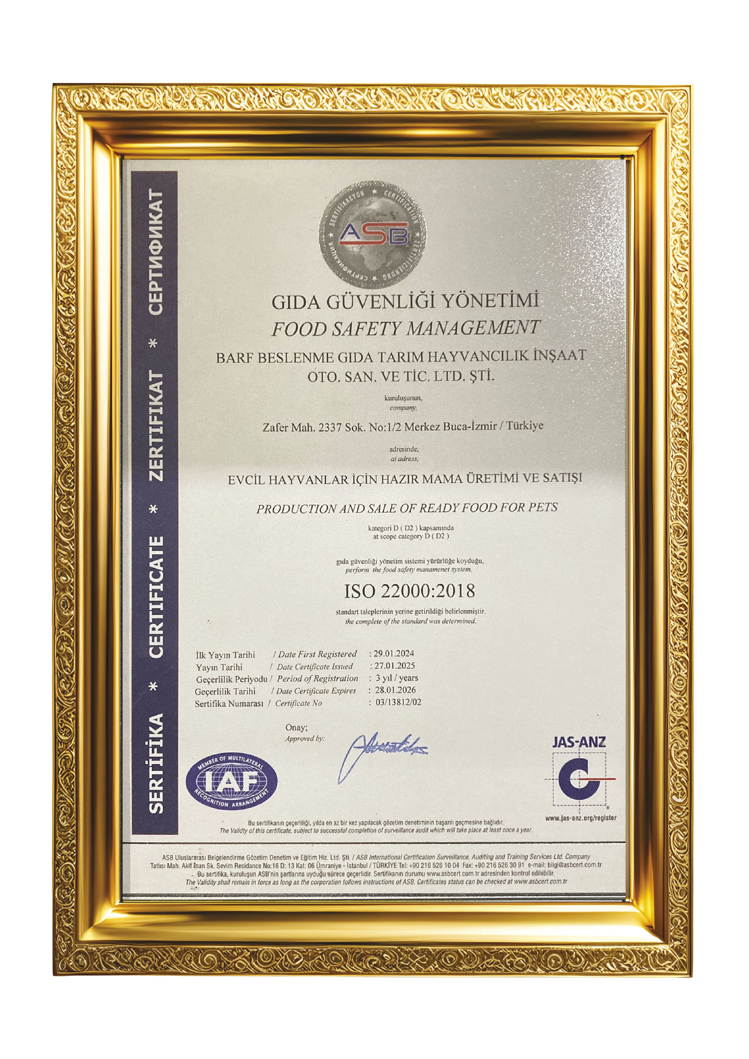 Her canlı için beslenme hayati bir ihtiyaçtır. Bu bilinçle, hem Çiğmamam hem de Barf Beslenme Gıda markalarımızla bu ihtiyacı en doğru ve sağlıklı şekilde karşılamak için çalışıyor, üretim tesislerimizi ve ticari faaliyet alanlarımızı bu vizyonla şekillendiriyoruz.